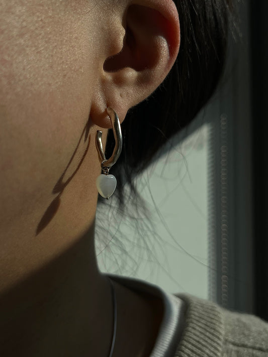 MOTHER OF PEARL PUFFY HEART HOOPS